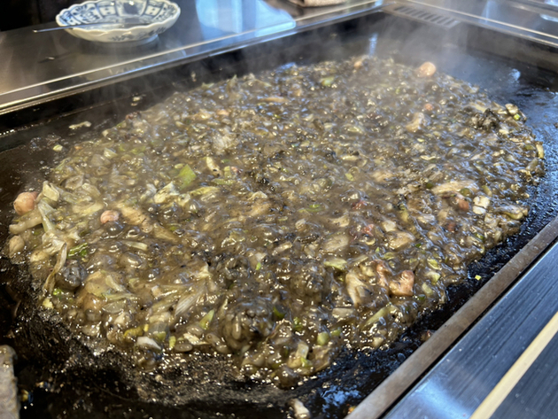 ⭐︎もんじゃはイカ墨もんじゃに餅をトッピング✨