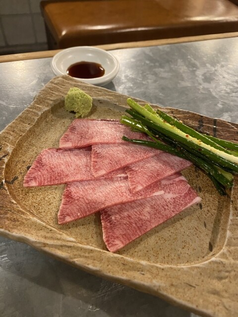 旬やさいのきまぐれサラダはトマトがたっぷりでドレッシングもしっかり。ナムル盛は3種類入っていてどれも食感もよく、豆もやしが特に好きでした。レバ刺しは臭みもなく気付けば夫がほとんど食べていました、、タン刺はネギと一緒に。美味しい!黒センマイも食感もよくレモンでさっぱりと美味しかったです。