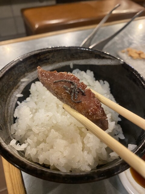 こちらのお店の最大の特徴は、素材にあう天然塩が9種類用意されていて、霜降り肉用、赤身肉用、鶏豚肉用、焼き野菜用とあり、塩の違いも楽しめます。まずは脂ののったカルビからいただきました。お塩でいただくので素材のよさを堪能できます。塩昆布といただくのも美味しかったです。