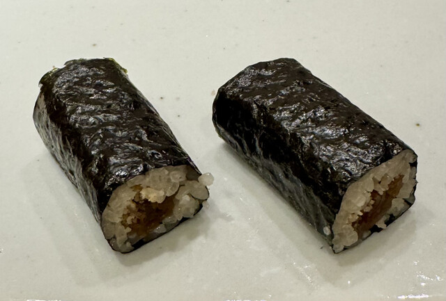 岡山の老舗鮨屋さんと比べると割合、しっかりしてメリハリの有る味付け。
