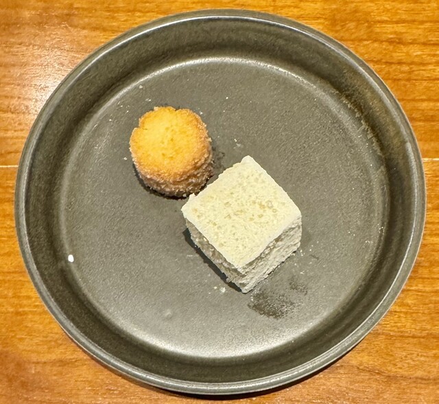 塩麹漬けのアコウ+レンコンを練って揚げた物。