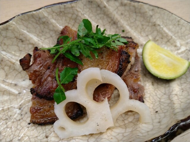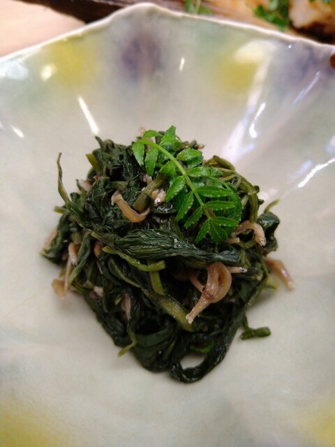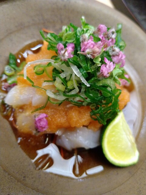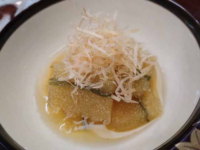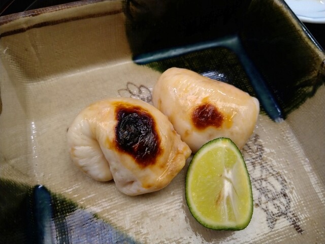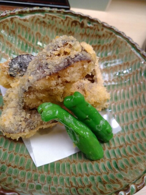 お刺身の盛り合わせに入った鱧霜、天然鮎の塩焼き、とうもろこしの天ぷら、牡蠣フライ、黒ずきん、穴子の山椒煮、猪の塩焼きなど頂きましたが、今回の感動は鱧の天ぷらでした。ふわふわしていて、歯触りもとても美味。