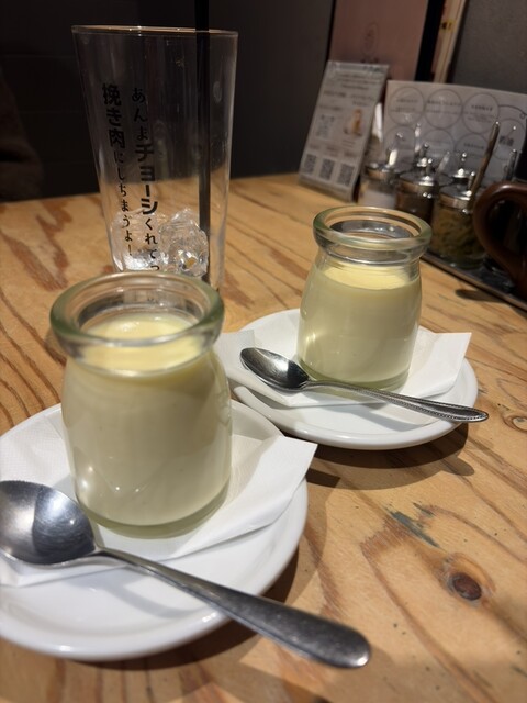 セットのドリンクは瓶詰めかわいいしジョッキの文字も良い感じだしプリンはちゃんとバニラビーンズの香りを感じるなめらかプリンだし