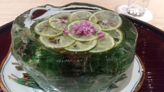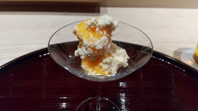 泡(日本酒)、キャビア、とうものこしのムース