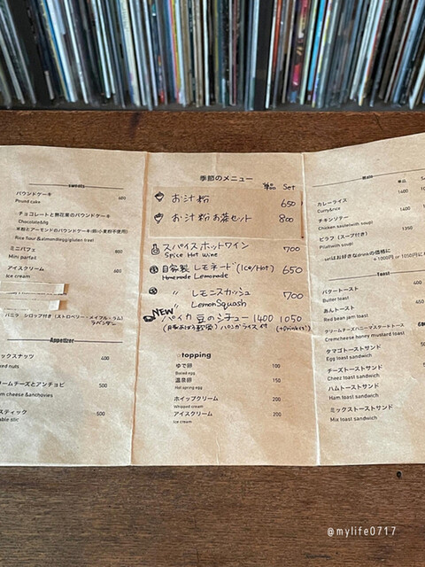 入ってすぐの棚には一面レコードが…
