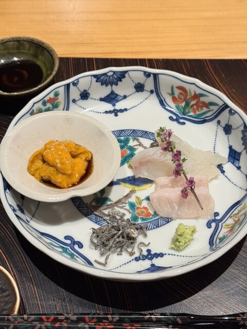 ・お造り(平目と北海道のむらさき雲丹)