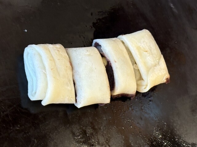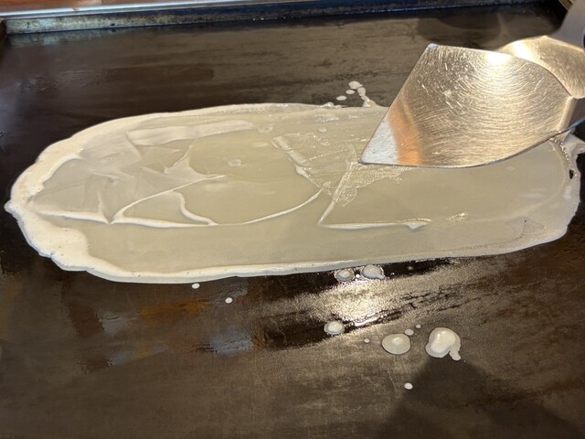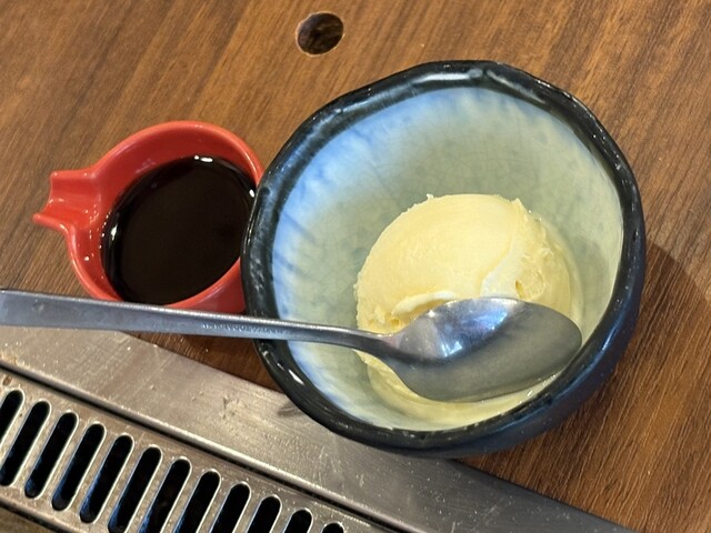締めのデザートは鉄板で焼いたあんこクレープ。焼き立ての皮の香ばしさにあんこの甘みが重なり、そこにバニラアイスとみつが加わることで、鉄板料理とはまた違う甘やかさを楽しめます。お腹いっぱいになった後でもするりと入ってしまう、完成度の高いデザートでした。