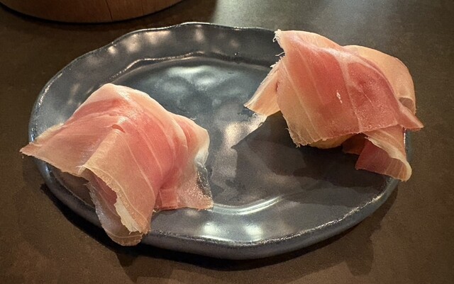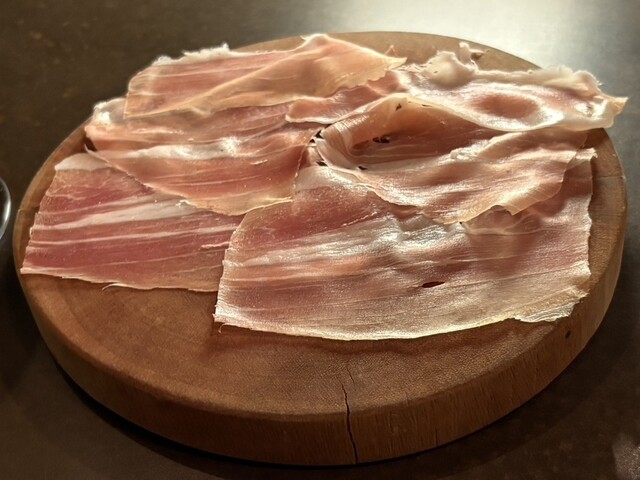 そのまま食べても十分美味しいのですが、生ハムをにょっこに乗せていただくと、小麦の甘みと生ハムの塩気、脂の旨味が一体になって、思わず笑ってしまう美味しさでした。こういうさりげない組み合わせの上手さに、心を掴まれます。