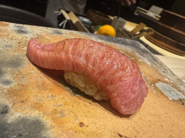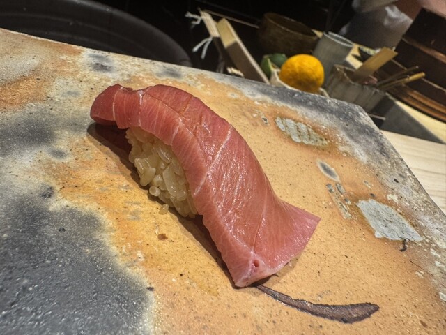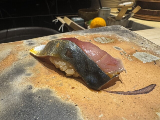 お鮨はどれも脂の乗りが良く、丁寧な仕事を感じる味わい。日本酒ペアリングも一貫一貫と非常によく合っていて、相性の良さに感動しました。日本酒のグラスが毎回変わる点にもこだわりを感じ、細部まで抜かりありません。