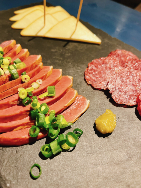 燻製はちょうどいい燻され方でチーズのコク。サラミは濃い味。程よい弾力食感のハツ。どれも良いー。