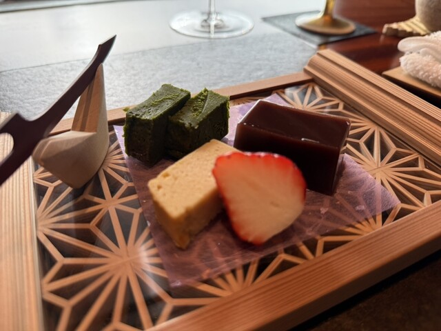 お料理の器やメニューの紙や敷物あちこちに美しさのこだわりを感じ、全てが美しいのでそれを感じるたびに感嘆の声が漏れそうでした