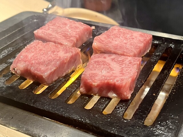 小粋なイケメン焼き師のご子息が丁寧に焼いてくださいます。その焼きの所作と黒を基調としたハイセンスな空間の中で最高級広島牛「榊山牛」とともに胸焼かれる方もいらっしゃるかも笑
