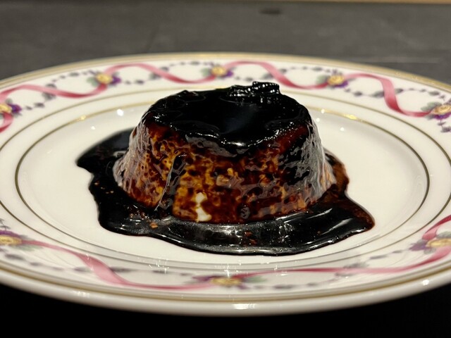 真っ黒なカラメルの苦味と、濃厚な生地のコントラストが印象的な大人のドルチェ。