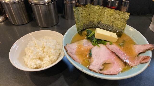 釜焼きチャーシューメン、小ライス、バター(ふつう、おおめ、やわらかめ)