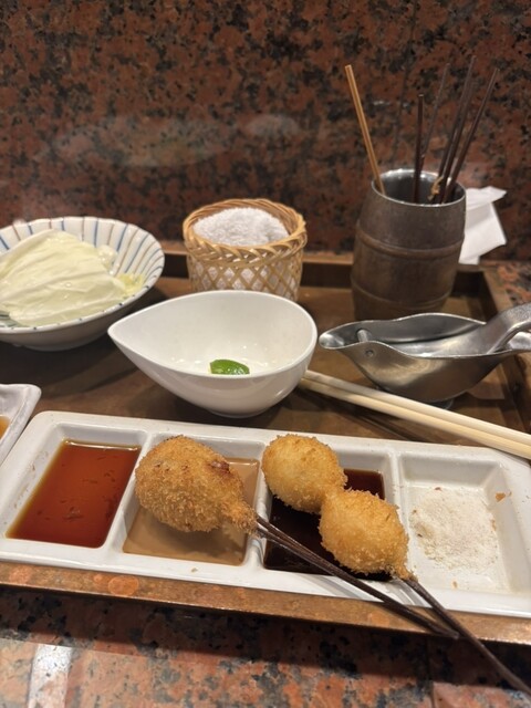 串はどれも美味しかったです。牛蒡の串カツが美味しかった。右から3番目のソースが絶妙!