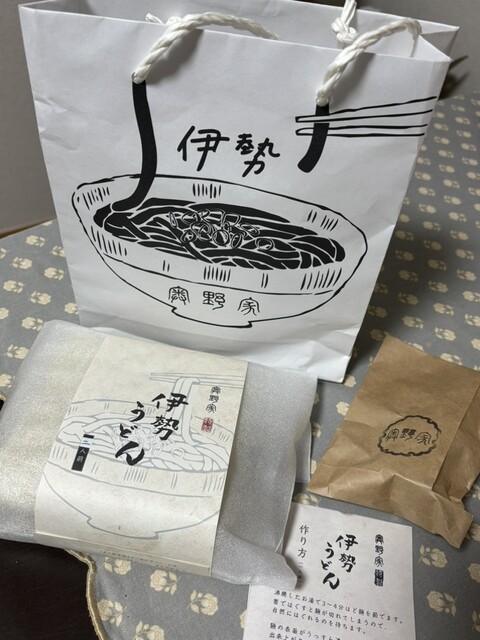 余りにも美味しかったので帰りに伊勢うどんお土産用と特製七味買いました。カッコいい紙袋に入れてもらえてお土産度アップです。