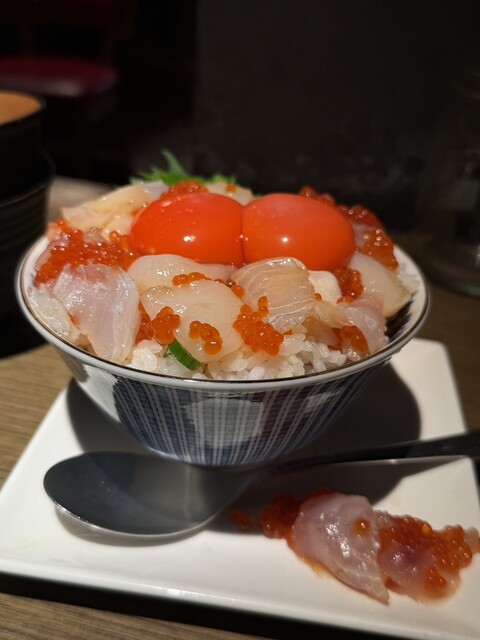 いくら、ほたてと鯛のぶつ切りが豪快に盛られ、見た目のインパクトも満点。