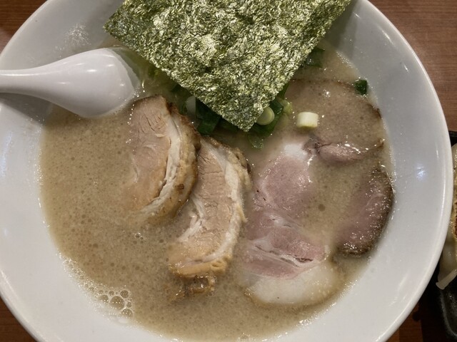 半チャーシュー麺と餃子、ネギダレのチャー丼