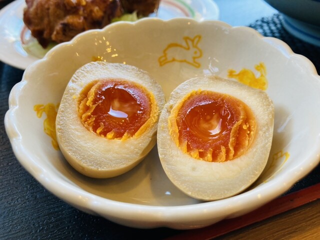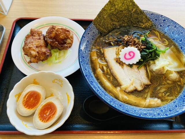 娘ちゃんが唐揚げが食べたいとのことで、シンプルな丸鶏醤油ラーメンをBセット、味玉トッピングでお願いしました。