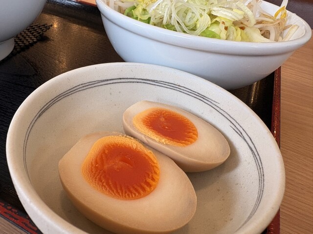 トッピングで味玉、チャーシューも注文、娘ちゃんの取り分け皿も。