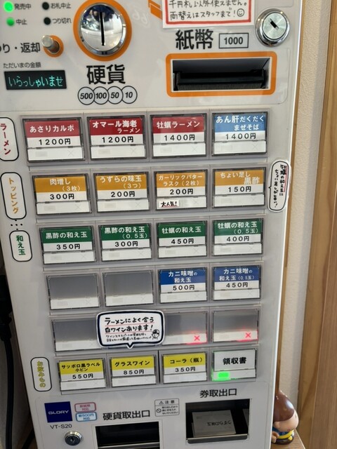 12時半頃環七東十条近くの同店を通ると、珍しく並びが少なかったので訪問。10分ほど待って入店。店主が手際よく誘導してくれる。夫婦で手際よく調理が進んでいる。今回は牡蠣ラーメン、トッピングでうずらの味付け卵を注文、こちらは煮干しベースのオマール海老、貝出汁ベースのあさりとどれも美味しい。しばらくして着丼。牡蠣、煮干しベースのスープは牡蠣の旨みが詰まっているようでクセになる味。喉越しのいい細麺と生肉、ネギ、味玉などを絡めていただくと美味い。食べ終わる頃には大行列。