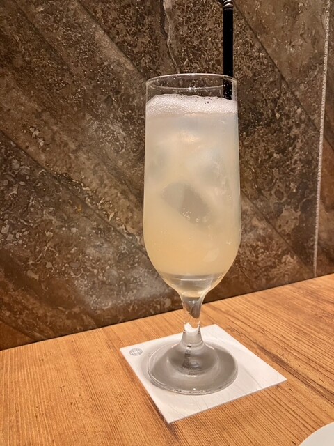 たてみち屋のレモン果汁を使った、レモン風味が広がるレモンスカッシュ。甘さが控えてあり、お肉とよく合う