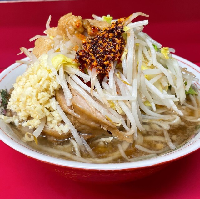 大豚(ヤサイニンニクアブララー油)+生たまご+生たまご
