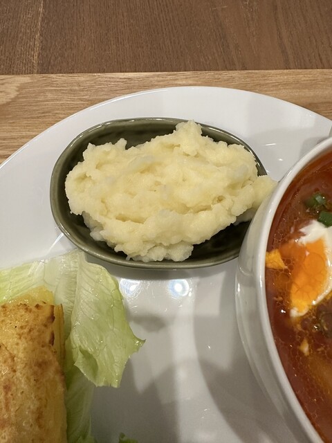 ボルシチ(ハーフ)、ムレンツィ、サーモンサラダ(ハーフ)、マッシュポテト
