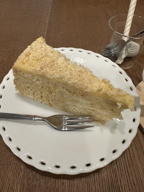 ミルフィーユのような見た目ですが、やや硬めの生地の甘いケーキです。