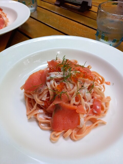 メインは、私の好きなクリームパスタで
