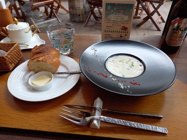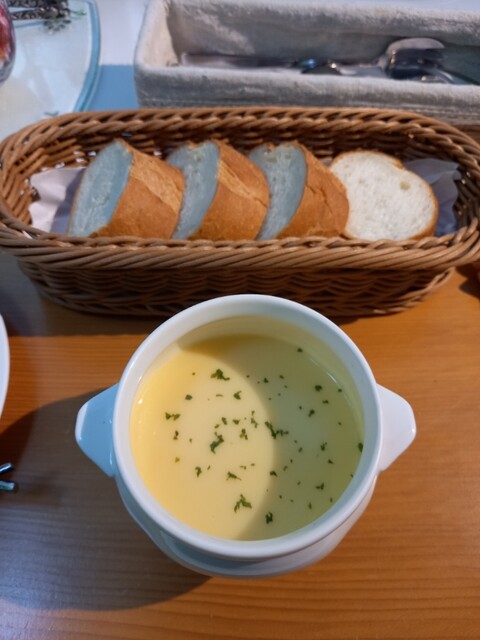 それから、前菜が出てきてスープにパン