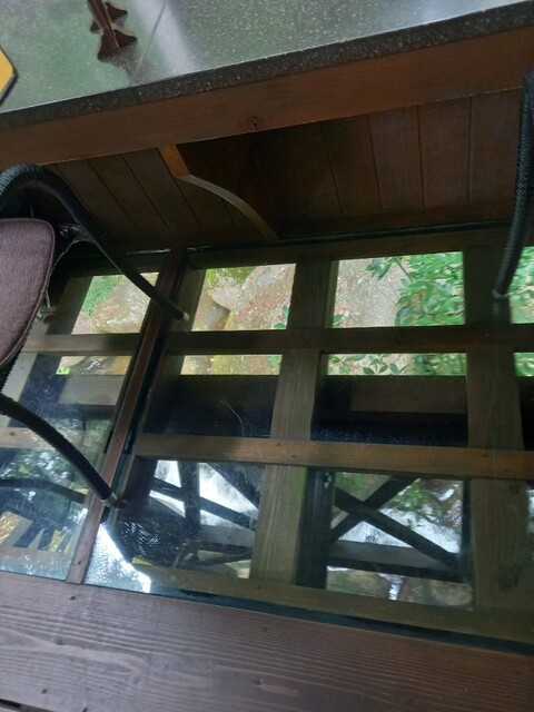 床がガラス貼りになっていて下を流れる川を
