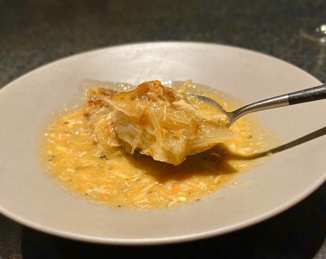 焼いた肉厚のフカヒレと海蟹のソースは、蟹の卵が入っていて、旨みたっぷりでまろやかで、かなり好み♡