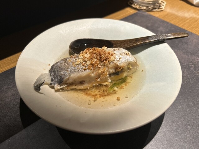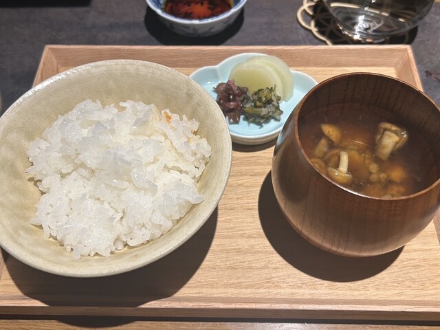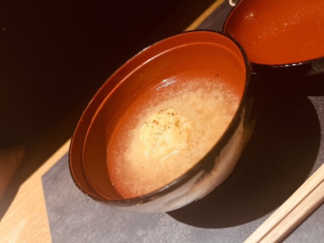 6月のメニューで、特によかったのは、レアアジフライです。柴漬けの入った少し酸味のあるタルタルとの相性が抜群でした。あと、釜炊きの白米にイカをイカワタの魚醤で味付けしたのに、熱々の出汁を注いでいただく出汁茶漬け、めちゃめちゃ美味かったです。