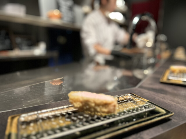 カウンターだけの小さなお店です。店長さんが厳選したお肉で揚げたトンカツを一番美味しい状態で出してくださいます