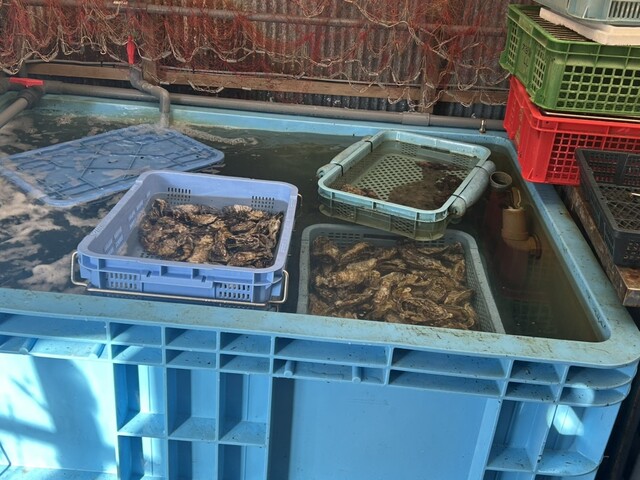 いわゆる、牡蠣小屋です。入口の水槽を見るだけでワクワクが止まりません