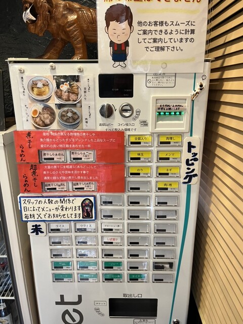 土曜日11時過ぎに訪問。待ちは無いけど案内されるまで外でお待ち下さいとの事で待機。すぐにホール担当の女性から食券をお求め下さいと言われ入店。煮干ラーメンをポチり食券を渡して案内されたカウンター席に着席しました。