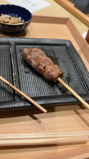 料理は一品ずつ丁寧に焼かれた焼き鳥で、店員さんが一品ずつ部位や味付けなどを説明してくれます。