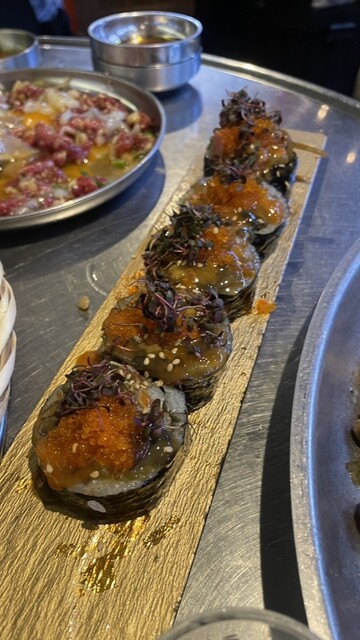 キンパはカニかエビがおすすめ。普通のパサっとしたキンパが好きであれば、カニエビじゃない方がいいです。