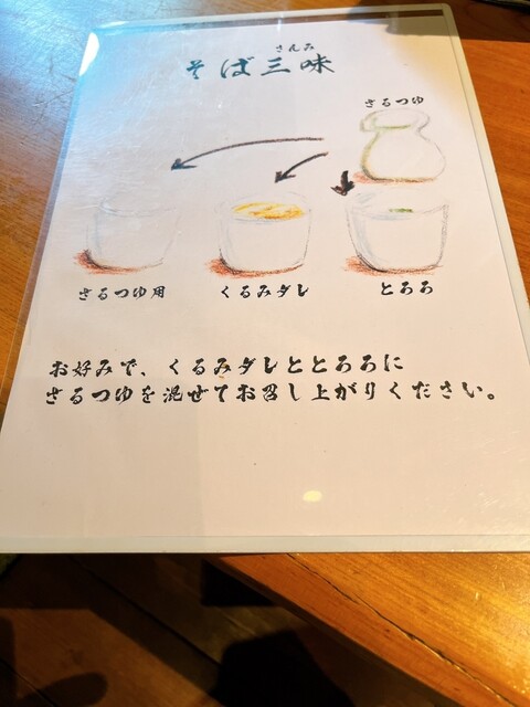 蕎麦はとろろとくるみと蕎麦つゆの3種類。