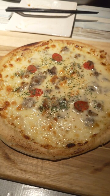 ピザでは、チーズと炭火焼の香りを楽しみました。
