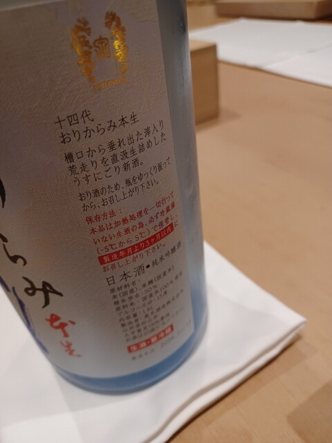 ここで、今回はお酒は控えよう、という我慢も限界。十四代の荒走りを頂く。1/22の搾りたてとのこと。やばい、美味しい。白子に合いすぎる。ここで、十四代の今の店主が、全国の酵母をどんなに研究し、イノベーションを起こしまくっているか、お話しをうかがう。うーん、日本食の未来の担い手たちってすごいなぁ。