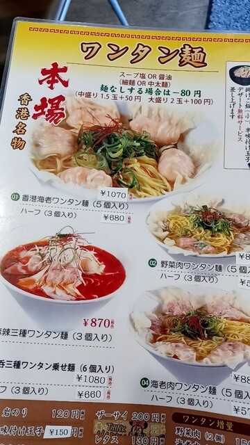 この土地じゃなかったら、食べログ100名店になっててもおかしくなく、もっと大人気になっているんだろうなぁ、としみじみ。海老ワンタン麺も、太麺と醤油味が選べるようになっているが、本当にもったいない。広東料理とか香港麺を食べたことの無い人達が「普通の醤油味のラーメンないの? 香港麺? なにそれ? 普通のラーメン出してよ」とクレームをつけて、メニューが増えていったのだろうと想像。そんな余計なローカライズせずに、本物の香港料理に突っ走って欲しいが、鶴見市場で生き残っていくには、地元に愛される努力は必要なのだろう。つくづく、飲食店はその土地に適応できなければ生き残れない厳しい商売だと感じる。