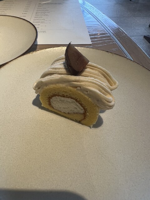 いつもはデザートに興味ない私ですが、グルっとシェフが席を周り宣伝をしてくれてあまりにも美味しそうなモンブランのロールケーキに飛びついてしまいました…美味