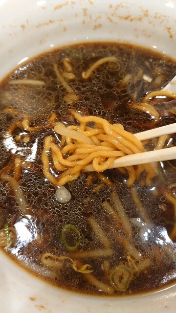 黄色味が強い特徴的な麺は硬目の仕上がりで食感もバツグン。縮れ麺でもないのにスープがよく絡みついてラーメンとして麺とスープを存分に堪能出来ました♪