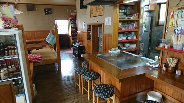 こちらはお昼時にお好み焼を注文するとサービスで定食が付いてくる(((((((・・;)高齢ですがとても元気な女将が切り盛りする鉄板焼屋さんです