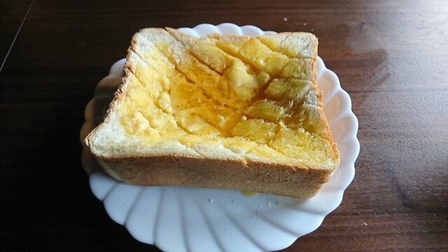 厚切りで食べにくいかなと思ったのですがちゃんとトーストに切れ目が入っていたので食べやすかった《*≧∀≦》