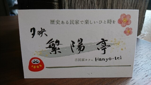 店舗案内板 古民家カフェ 夕映 繁陽亭←
