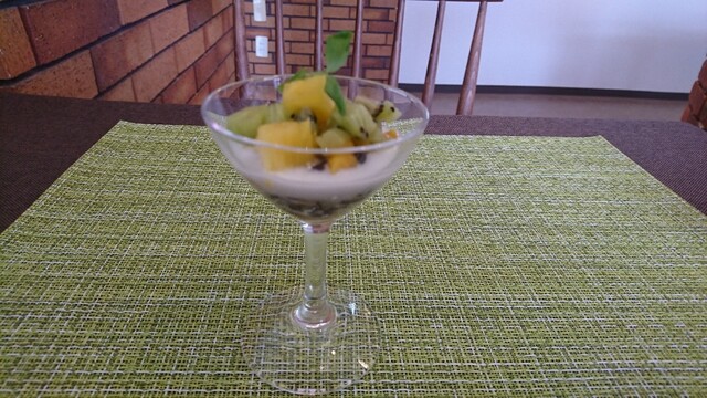 デザート 古代米とココナッツのバリソース フルーツ添え