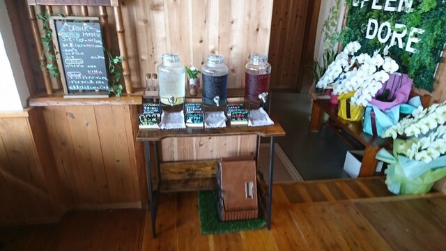 ルイボスティーがカウンター席に運ばれ奥さまより3つのドリンクがセルフサービスで飲めると説明を受けました(’-’*)♪